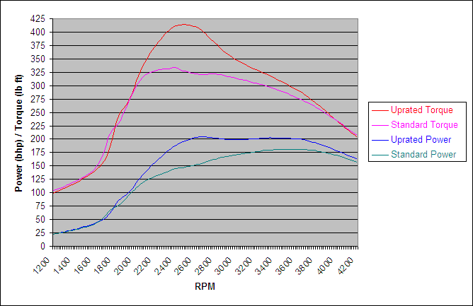 Dyno graph for Volkswagen Transporter 2.5TDi 174, engine code AXE
